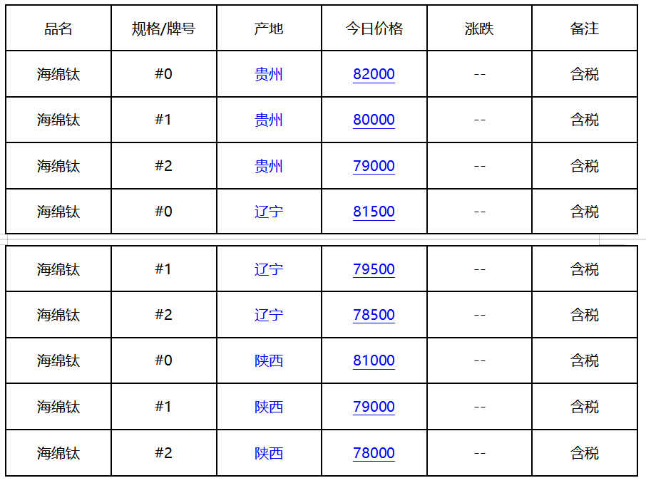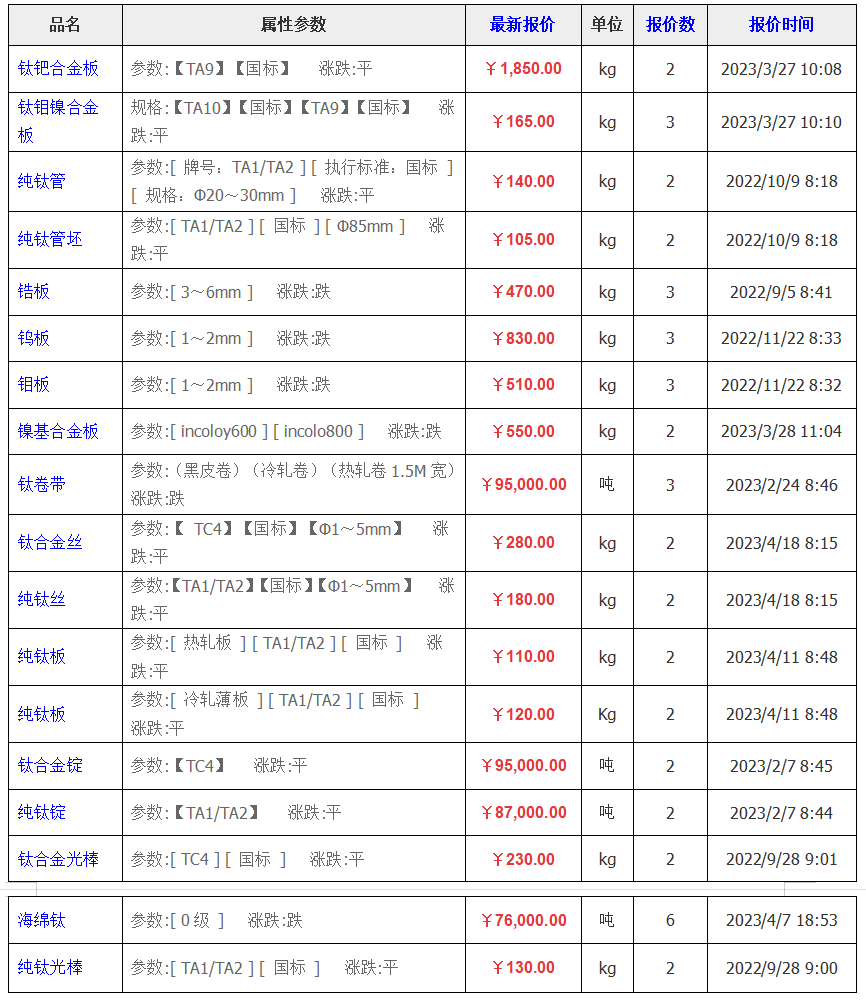 二、國(guó)內(nèi)市場(chǎng)海綿鈦價(jià)格行情 (20230417)
